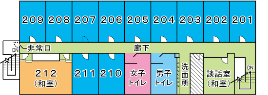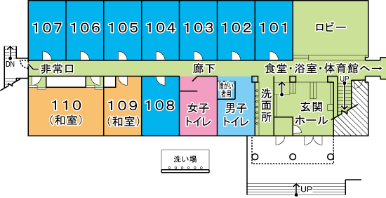 - 宿泊棟から食堂、お風呂、体育館へは廊下でつながってます