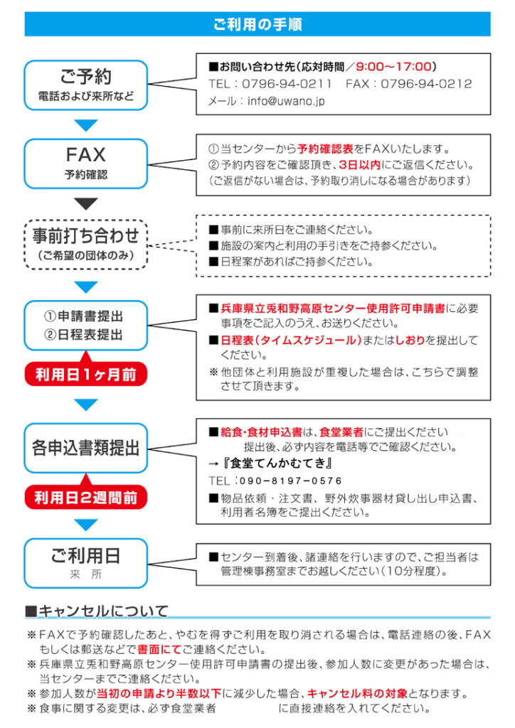 - 利用日の1週間前からキャンセル料をいただいております(宿泊の場合)。